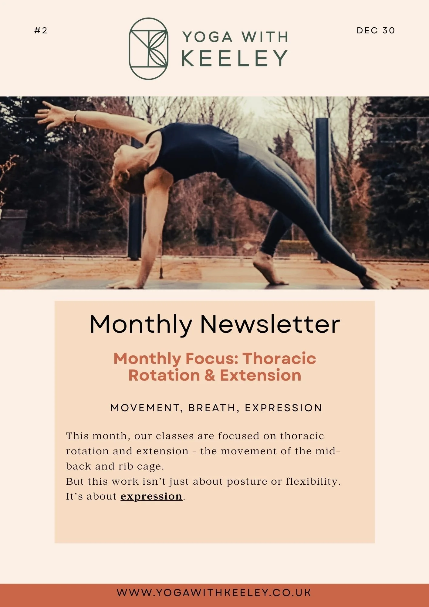 January invites a reset that isn’t about restriction or control. Instead, we begin the year by moving, breathing and expressing. This month’s focus supports freedom through the spine, deeper connection to breath, and movement that feels expansive, grounded and emotionally supportive.